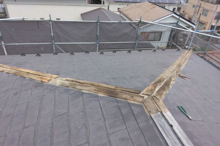足立区西新井にて屋根カバー工法工事を行いました。主な使用材料 ニチハ横暖ルーフS使用